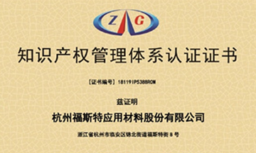 杭州福斯特應用材料股份有限公司于2019年11月5日順利通過知識產權管理體系認證(貫標認證),獲得中規(北京)認證有限公司頒發的認證證書,標志著我公司在知識產權管理體系的建立、實施工作中取得階段性成果,在知識產權創造、運用、管理和保護方面全面具備國內領先水平。