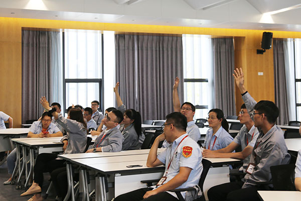 本次聯歡活動共分為“你劃我猜”,企業文化、安全知識問答,“背靠背”三個游戲環節,每輪游戲穿插抽獎,為此公司還準備了空氣炸鍋、洗發水、積分券等眾多精美禮品。聯歡活動得到了各部門、車間的大力支持,各車間利用交接班時間分批組織,職能部門則抽出午休時間召集科員加入聯歡,研究院更是幾乎全員參與。