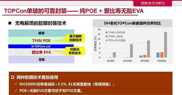 TOPCon:TF4N純POE+愛比壽抗酸EVA解決單玻封裝難題;低/零水透背板阻擋水汽入侵