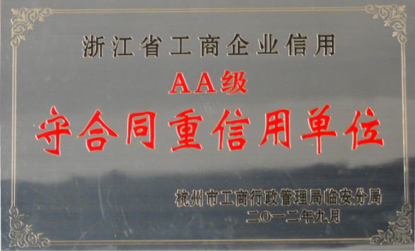 熱烈祝賀福斯特榮獲浙江省工商企業(yè)信用AA級“守合同重信用單位”稱號。