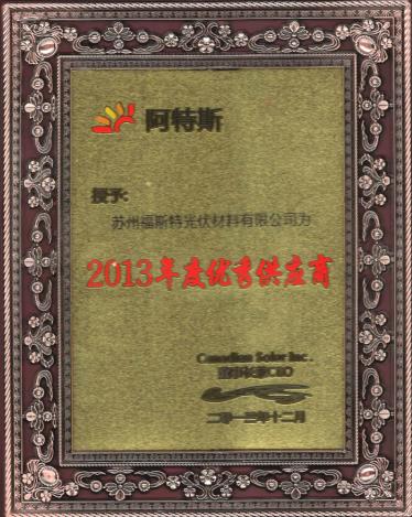 蘇州福斯特被阿特斯評為“2013年度優秀供應商”
