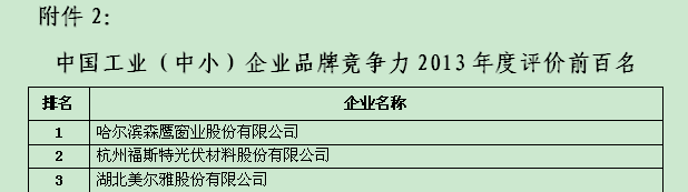 福斯特被評(píng)為“中國(guó)工業(yè)(中小)企業(yè)品牌競(jìng)爭(zhēng)力2013年度評(píng)價(jià)前百名”第二名
