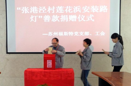蘇州福斯特舉行“張港涇村蓮花浜安裝路燈” 善款捐贈活動