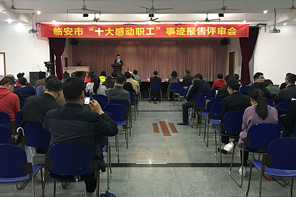 “感動你我,說出你的故事”,4月20日,十大感動職工”事跡報告評審會在臨安市衣錦小學舉行,作品演說人謝加勇在會中進行精彩演講。