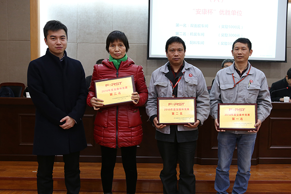 表彰會上,榮獲公司2016年度先進集體、先進班組、5S先進單位的部門、車間,榮獲2016年度優秀員工,愛廠敬業五年、十年員工,技術革新成果獎獲獎者,黨員積極分子,“安康杯”優勝單位,工會積極分子接受了榮譽表彰。優秀員工代表、愛廠敬業十年員工代表先后在會中發言。