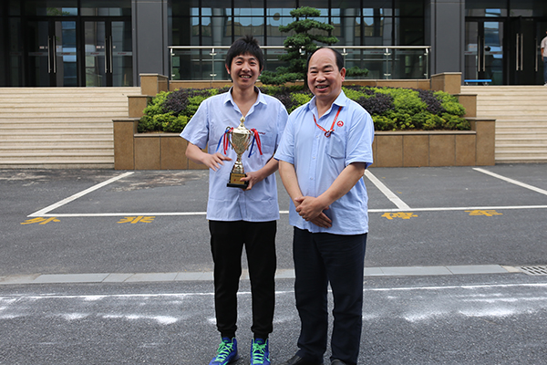 福斯特工會主席胡偉民為冠軍隊伍——工會四組(發電公司代表隊)頒獎