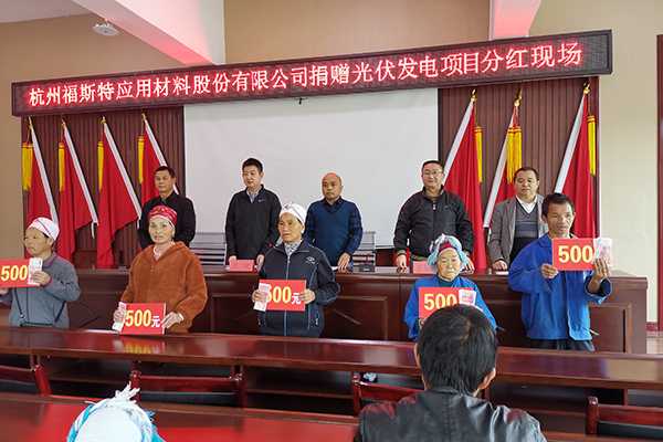 10月29日,由杭州福斯特應(yīng)用材料股份有限公司捐贈的光伏發(fā)電項目1.3萬元分紅資金順利發(fā)放到貴州施秉縣小河村14戶、九龍村12戶貧困戶手中。光伏發(fā)電帶來的經(jīng)濟(jì)效益和生態(tài)效益讓貧困地區(qū)人們得到了更多的喜悅感和獲得感。