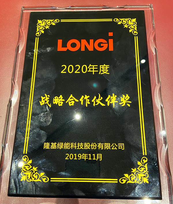 福斯特榮獲隆基2020年度戰略合作伙伴獎